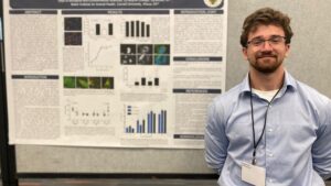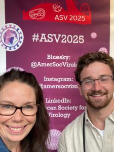 Scenes from the 2025 American Society for Virology Annual Meeting in Montréal, Quebec where Cyril ’25 presented his undergraduate research project on the international stage with Emily Ledgerwood, Ph.D. cheering him on.